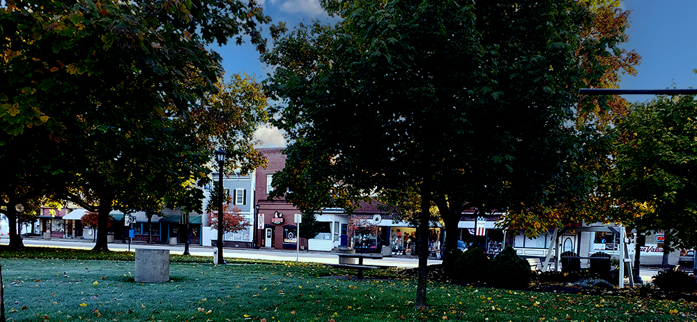 Walkability to a downtown area: Lodi, Ohio has a beautiful downtown area. Their picturesque square has a gazebo, a beautiful flowing fountain and so many businesses.